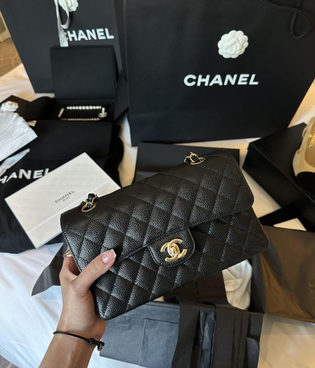 La FLAT CHANEL está fabricada en piel de alta calidad y cuenta con un diseño elegante, lo que por su precio, la convierte en una de las bag relación precio/calidad mas solida del mercado. El material es piel de primera linea
